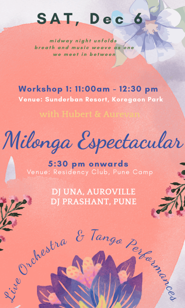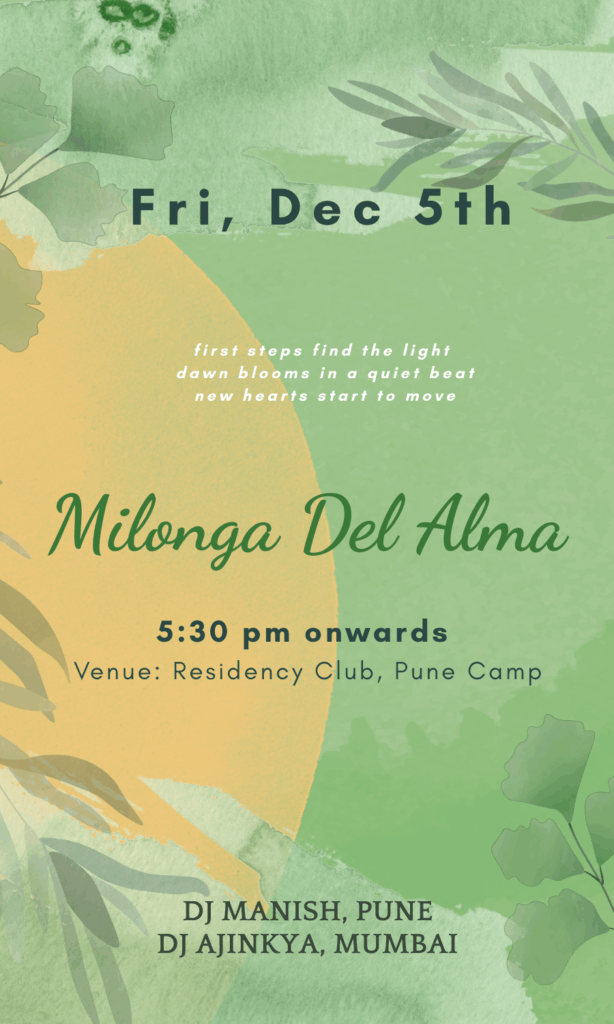 The Pune Tango Community home milonga is scheduled on Tue, Dec 9th, 2025. This milonga is free for all participants of the Pune Tangotsav.