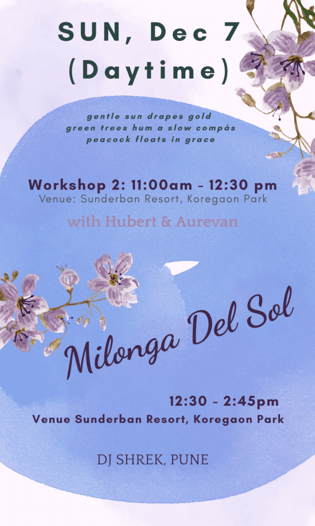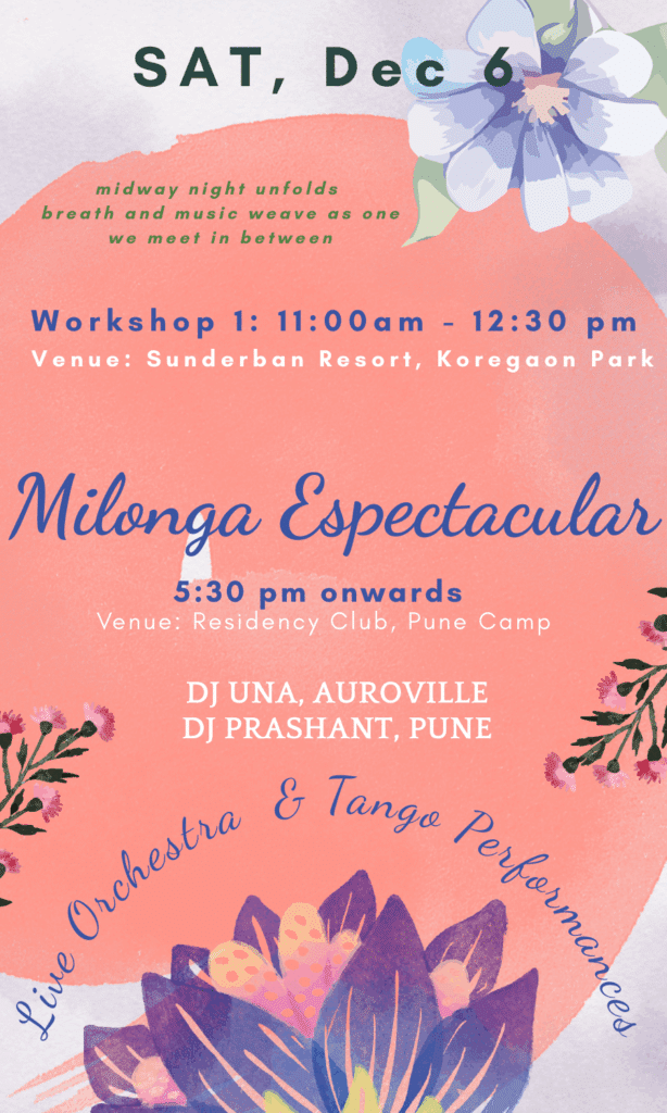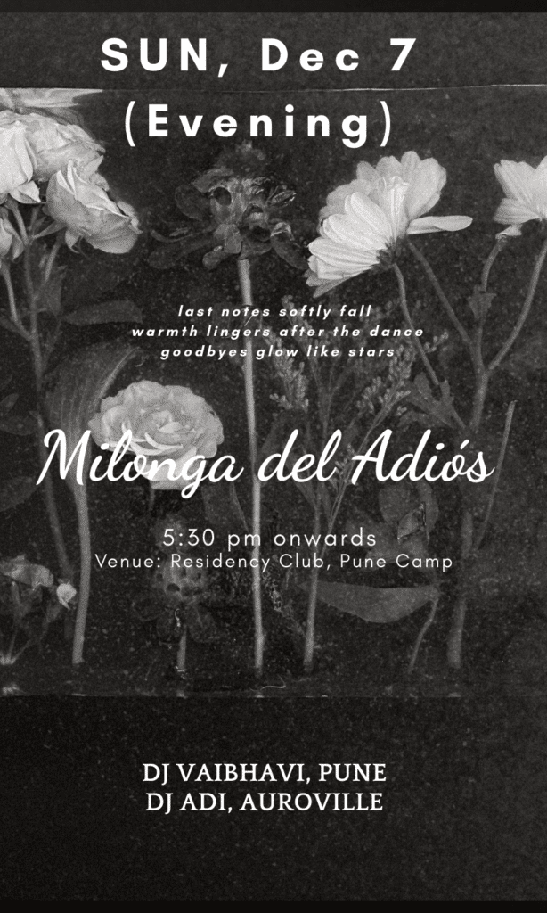 The Pune Tango Community home milonga is scheduled on Tue, Dec 9th, 2025. This milonga is free for all participants of the Pune Tangotsav.